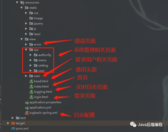 java部分、html、js、css部分都是大目录下面按单表一个子目录存放
