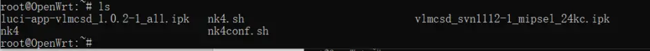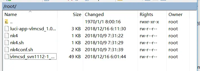如下图,我已经把两个ipk文件上传进路由器的/root/目录下了:
