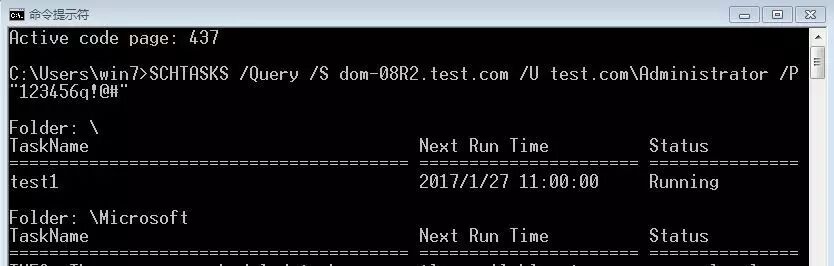 SCHTASKS /Query /S dom-08R2.test.com /U test.com\Administrator /P "123456q!@#"