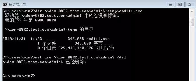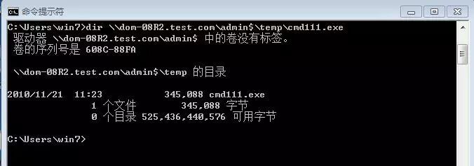 dir \\dom-08R2.test.com\admin$\temp\cmd111.exe