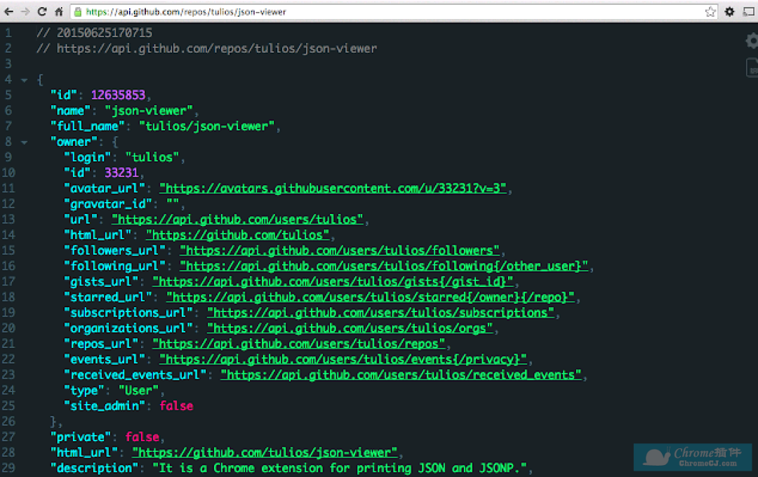 JSON Viewer是一款漂亮的、可定制的JSON / JSONP荧光笔高亮插件。它是用于打印JSON和JSONP的Chrome扩展程序。