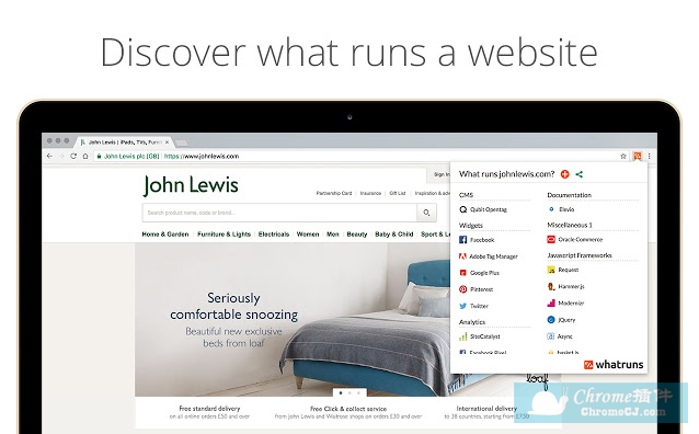 1、一键点击即可找到您访问的任何网站上使用的技术。