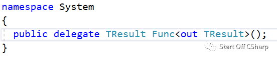 Func委托,它托管有返回值的方法,它的构造方法的重载有17个之多,也就是说,你可以用它匹配最多有16个参数的带有返回值的方法