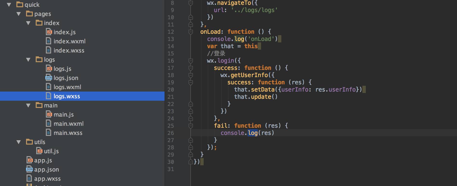 app.js里面是登录代码: