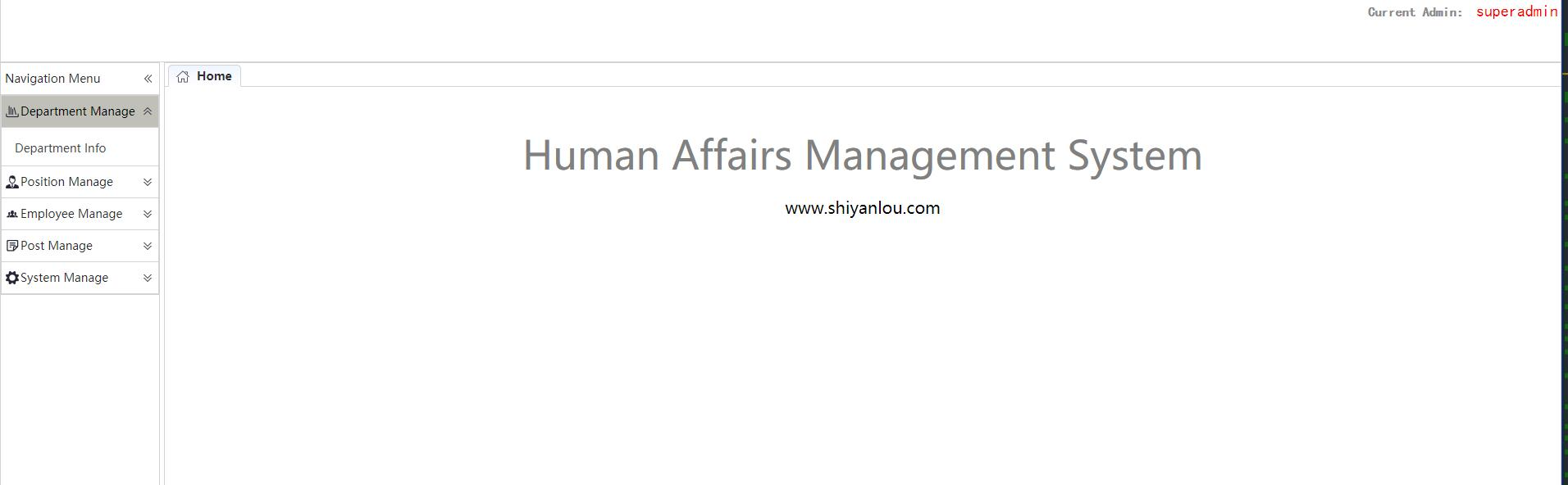 输入正确的用户名和密码,如用户名:superadmin,密码:123456,点击登录,登录成功进入系统主页。