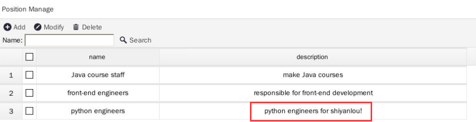 选择一个职位,如刚添加的 python engineers,点击 Modify 链接,弹出 Edit position information 窗口。